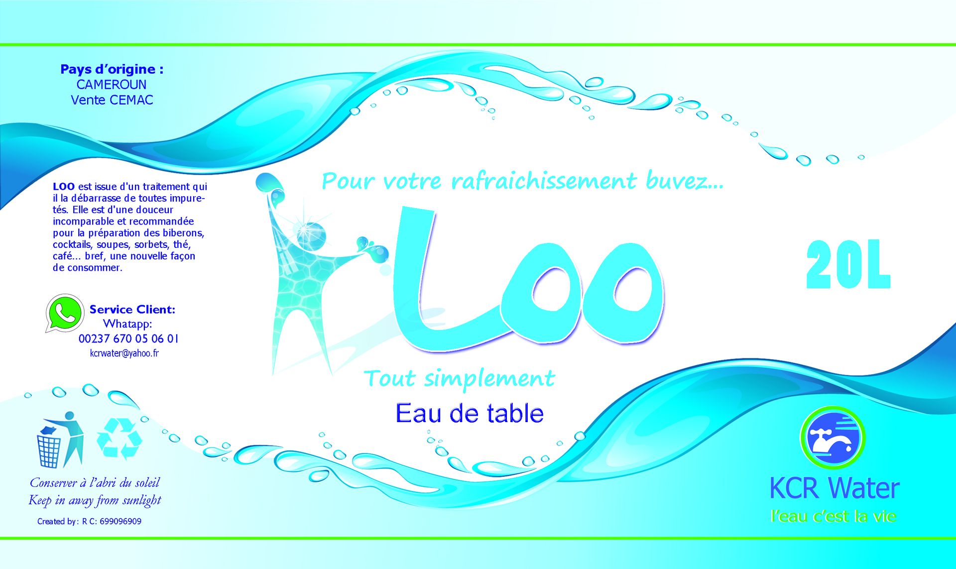 KCR WATER est une entreprise spécialisée dans le domaine du traitement et de l’embouteillage et de la distribution de l’eau. Présente sur le territoire Camerounais depuis 2011, KCR WATER possède une unité de production, à Yaoundé, et prévoit l’ouverture de succursales dans d’autres grandes villes du pays